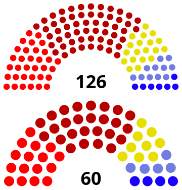 The Communist Party of Sveland has advanced in gaining seats in the legislature, which won 25.7% of the vote. Seats of each party is as it follows, for the National Assembly and the Senate:
